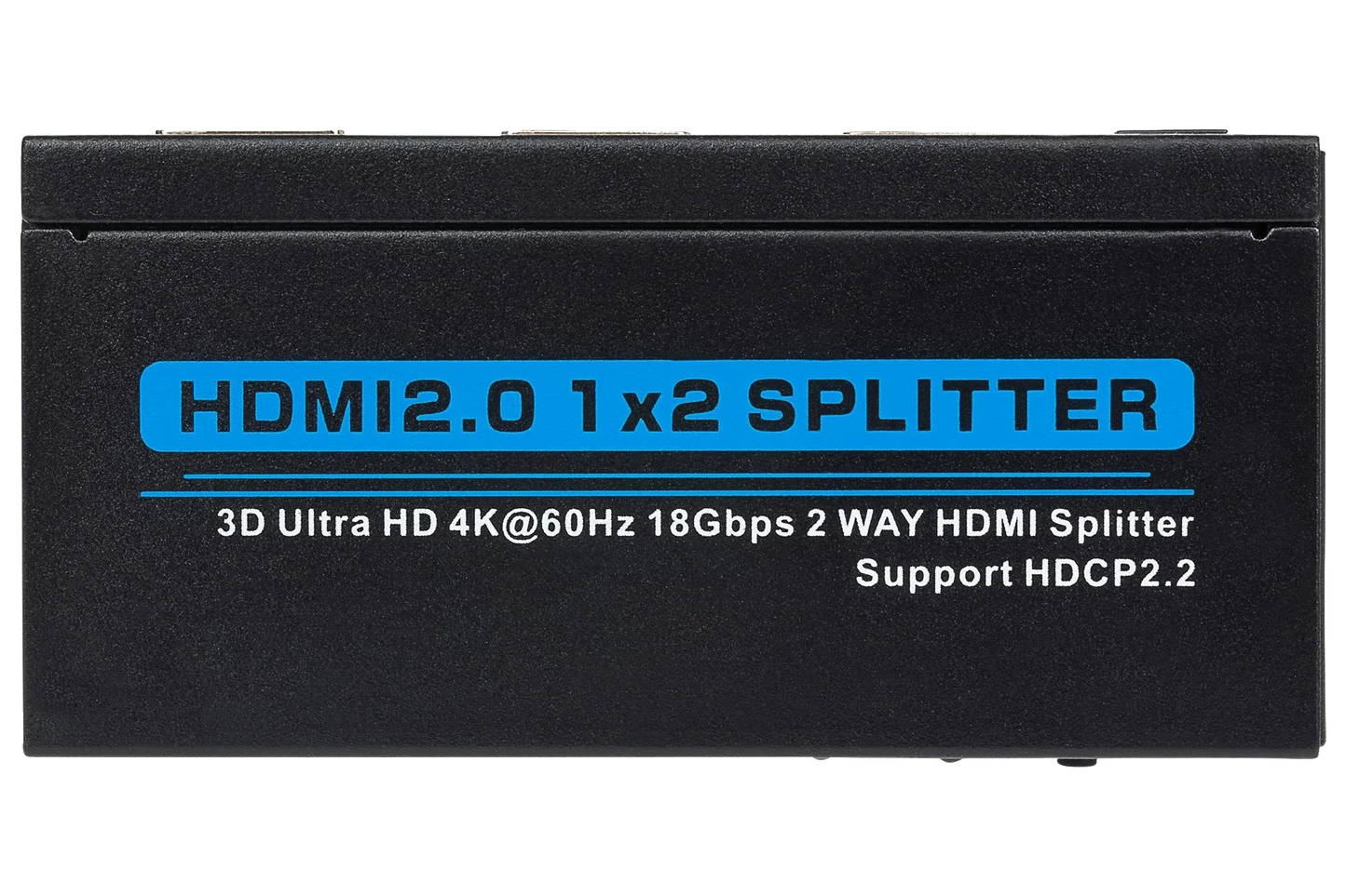 Use the Nikkai 2-Port HDMI 2.0 Splitter for amplifying and splitting the HDMI signal to 2 monitor displays or televisions at the same time without video quality distortion. Supporting 4K resolution at 60Hz. HDCP2.2 Series