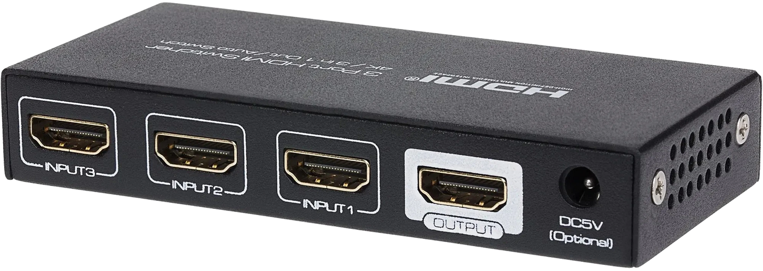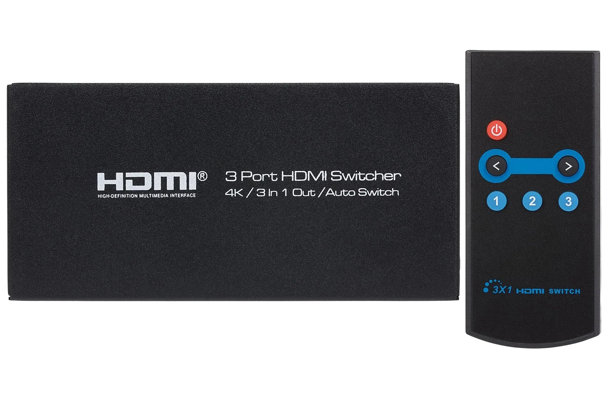 Nikkai 3-Port HDMI Switch 4K 30Hz Resolution with Remote Control - Black