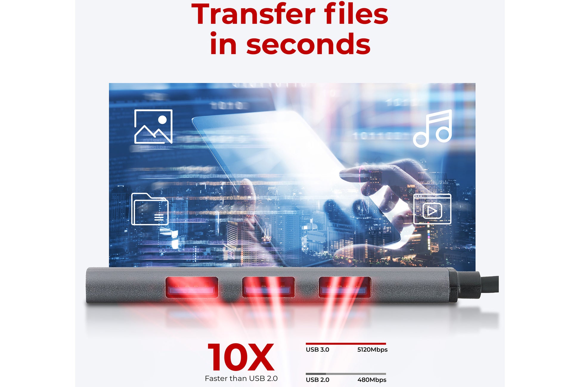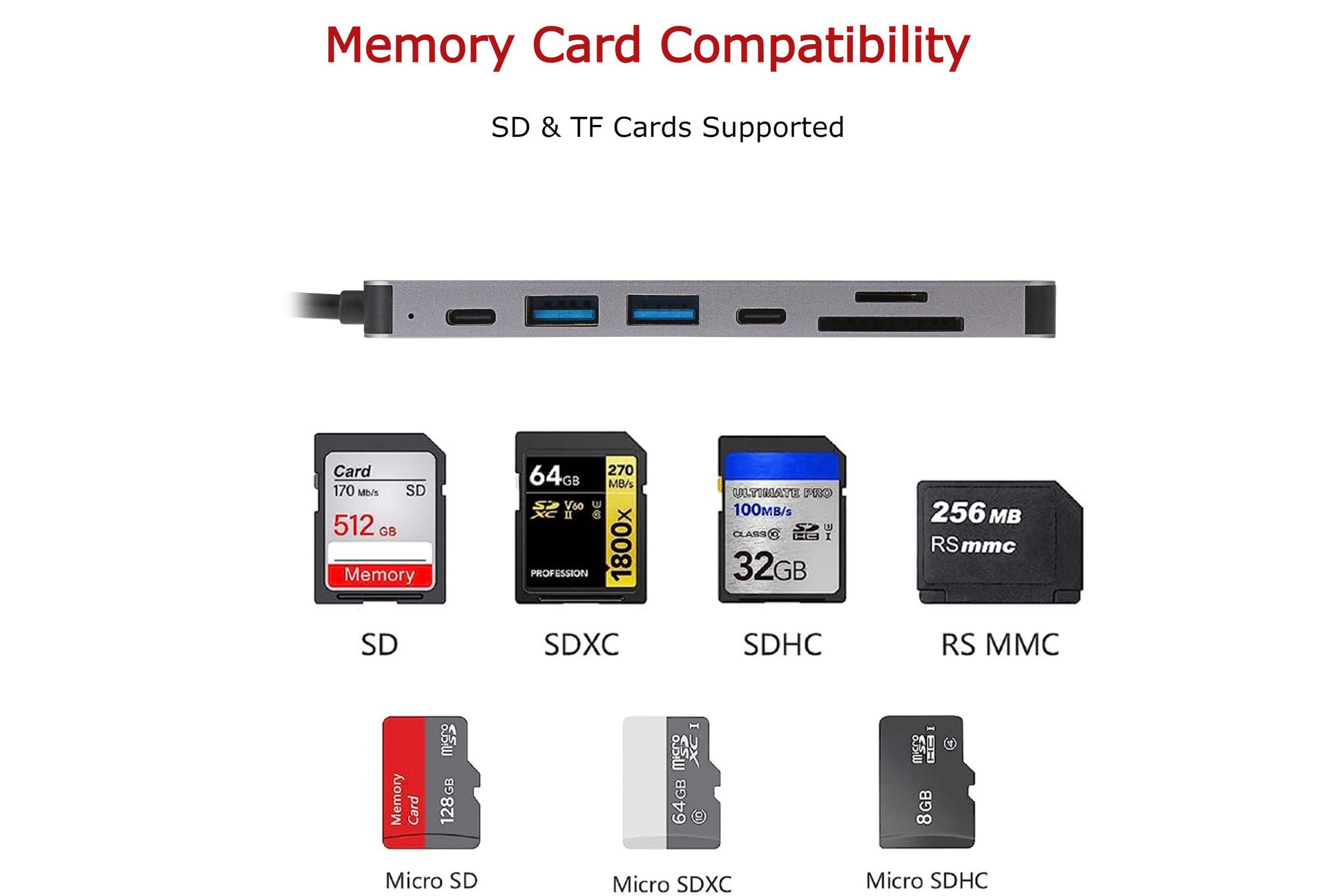 The Gigabit Ethernet port ensures reliable wired network access, which is ideal for areas with limited Wi-Fi. With three additional USB 3.0 ports and one USB 2.0 port (USB Type-A) you can connect existing peripheral devices, like your mouse or flash drive. They deliver up to 5 Gbps data speeds. The adapter also has an SD and a MicroSD card reader slot so you can access all of your multimedia content. Both can work simultaneously. It also features a USB-C port that supports USB Power Delivery 3.0 (USB PD 3.0) to use your laptop’s USB-C power adapter to power your laptop. It supports 100W max output charging.