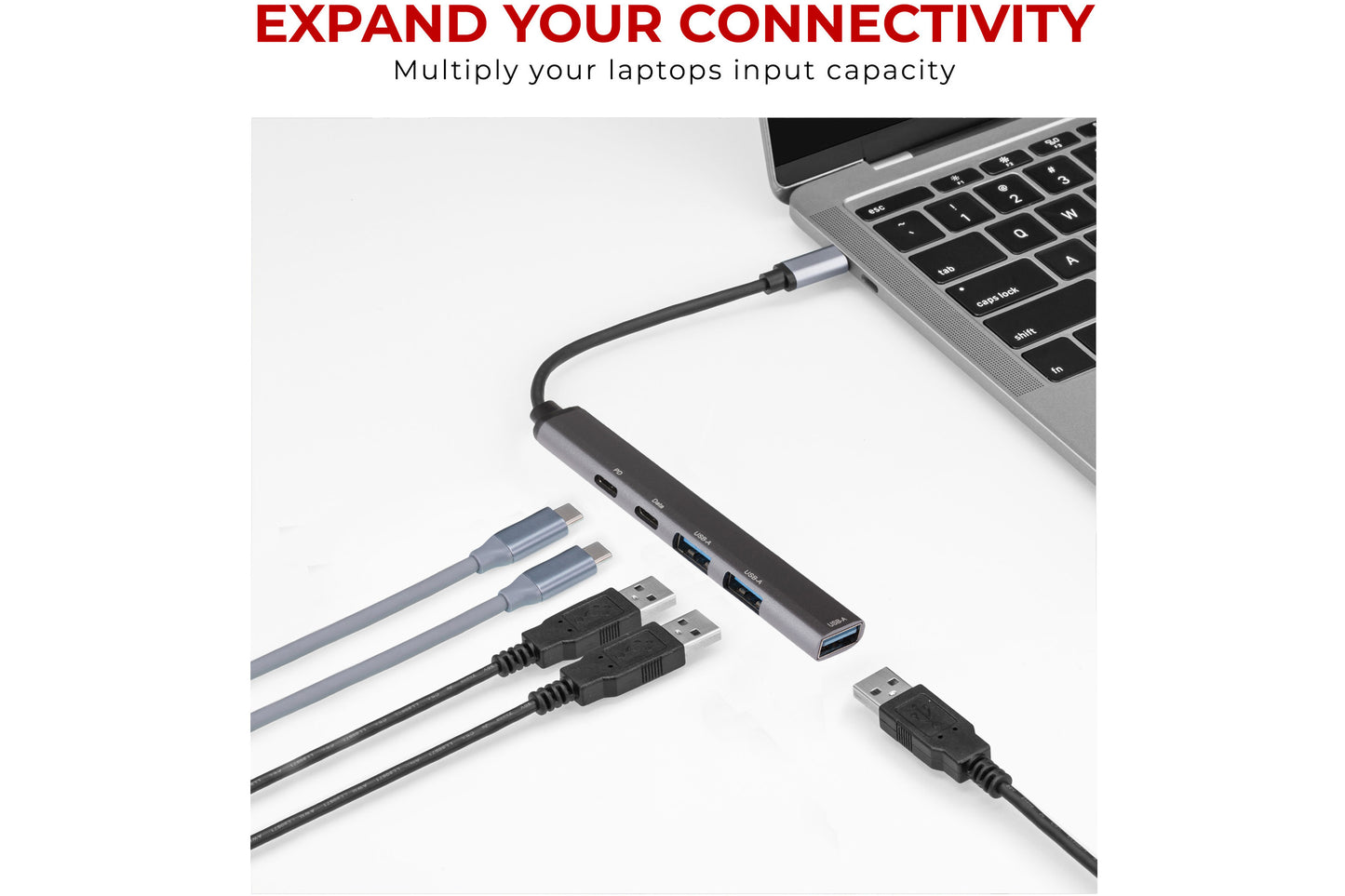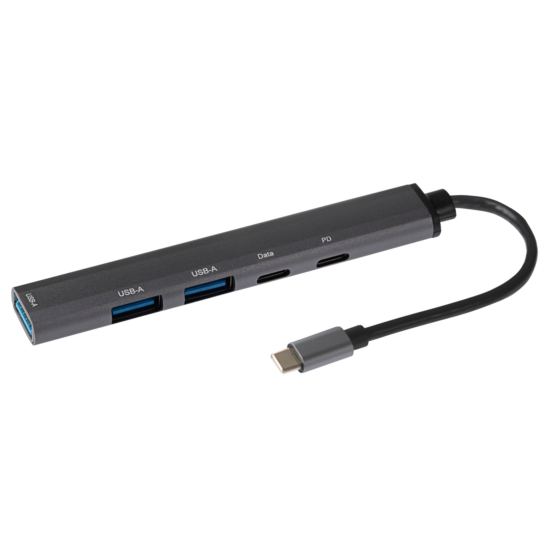 Expand the connectivity of your MacBook Pro, Chromebook or other USB-C enabled laptop. The Nikkai USB-C Multiport Hub to 3x USB-A 3.0 / 2x Super Speed USB-C with 13cm Cable lets you use three USB 3.0 Type-A ports, a PD charging USB-C port and a data transfer USB-C port all through your laptop’s USB-C port.